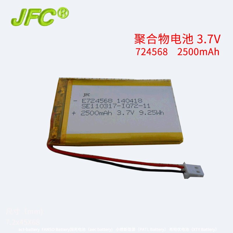 高容量锂聚合物电池 724568 2500mAH Pure cobalt system Li-ion battery